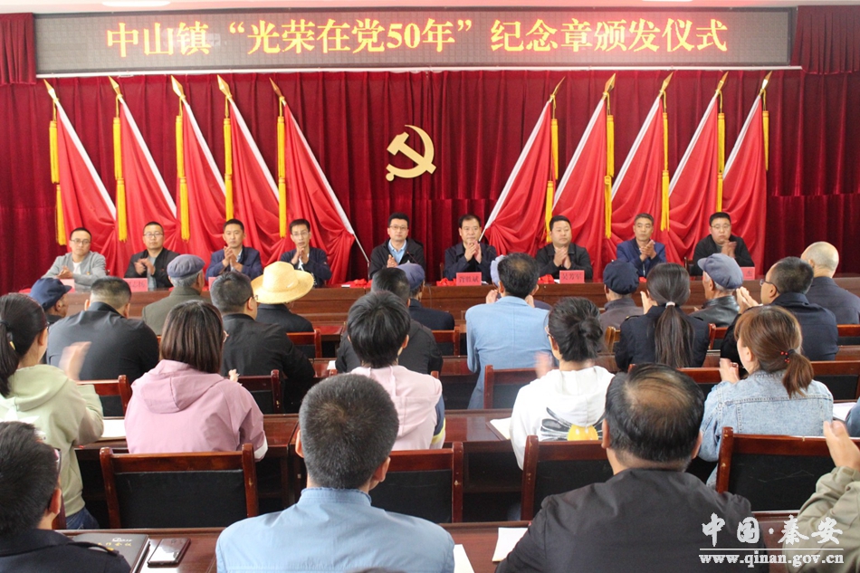 在喜迎党的百年华诞之际,6月17日,中山镇党委举行“光荣在党50年”纪念章颁发仪式,镇党委主要负责人带领全体党政班子成员为11名获得纪念章的老党员代表颁发了“光荣在党50年”纪念章,将党中央的关怀送到老党员的手中。并动员全镇广大党员干部赓续光荣传统、牢记初心使命、永葆奋斗本色。
