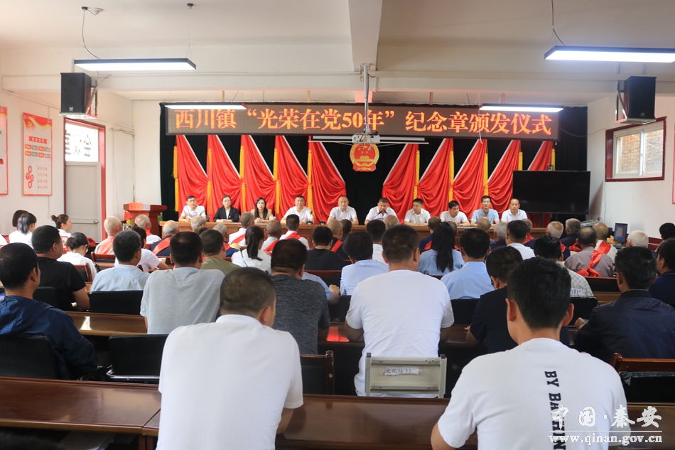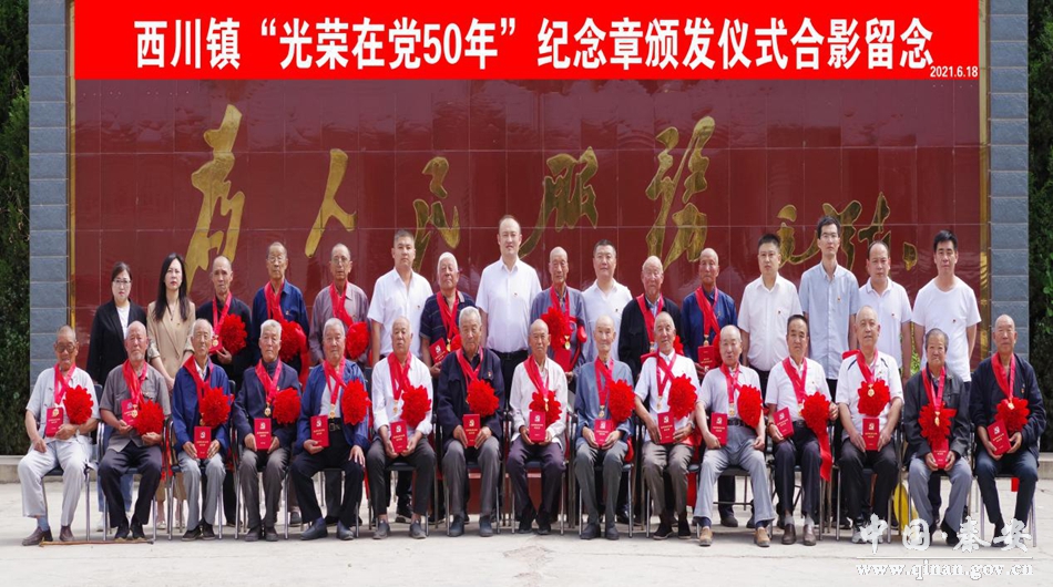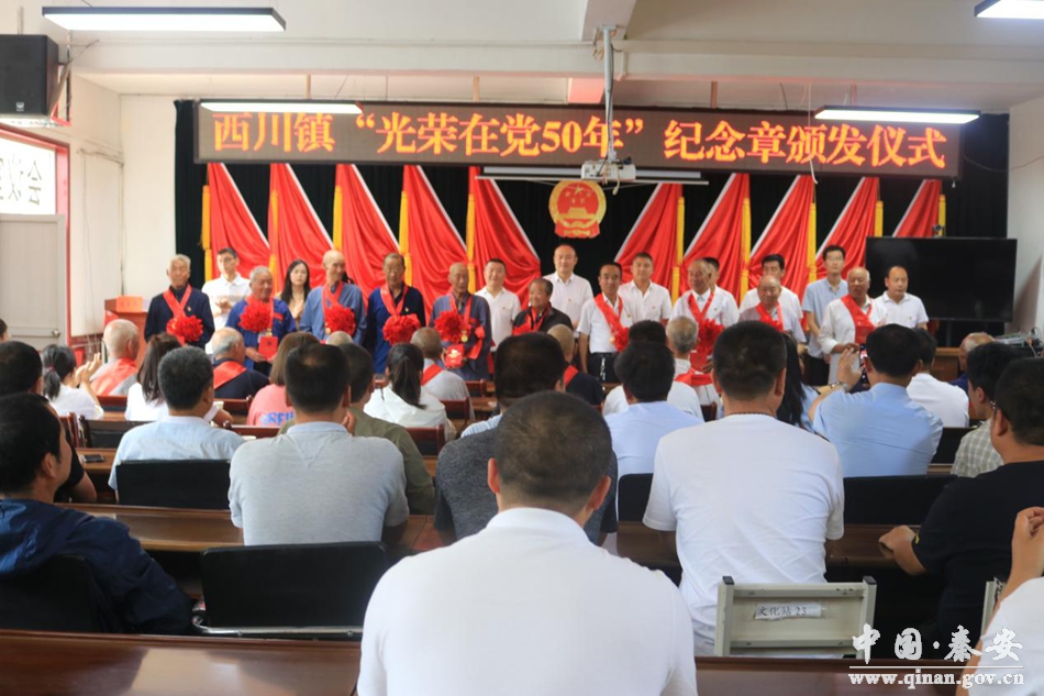 6月18日下午,西川镇举行“光荣在党50年”纪念章颁发仪式。全体镇领导,各村党支部书记、副书记、专职村文书,50年及以上党龄老党员代表共计100余人参加。