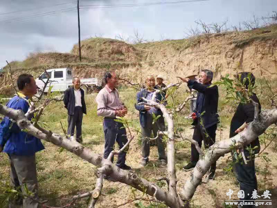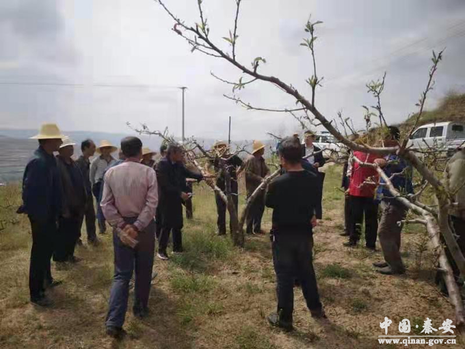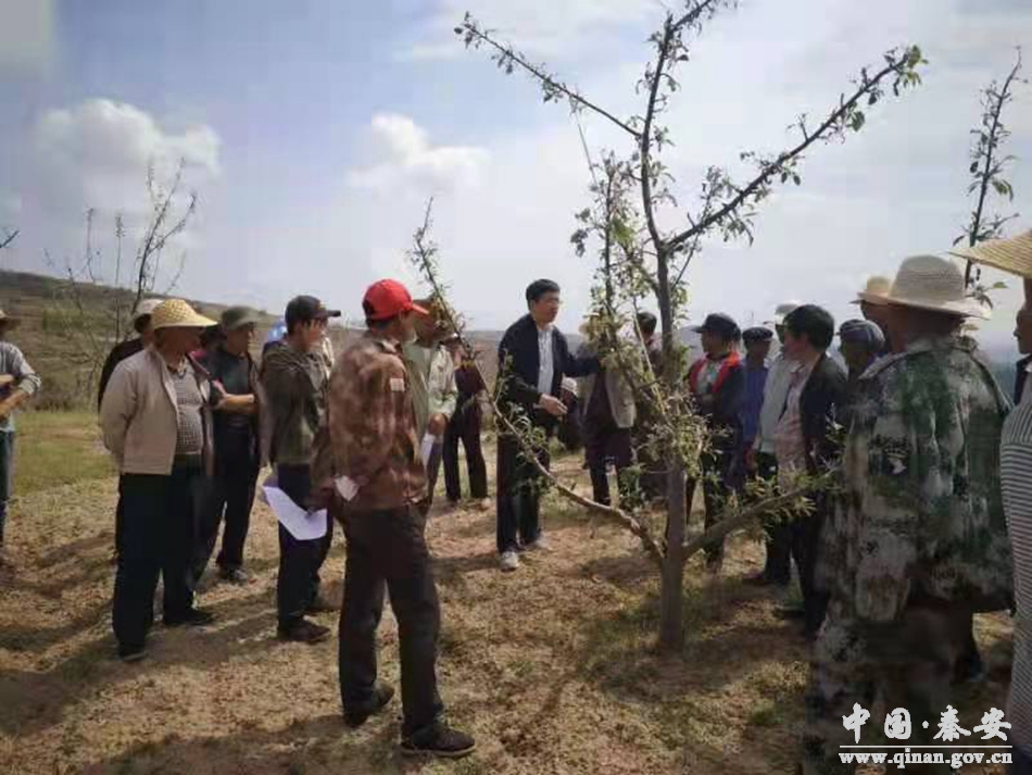 “5.2”冰雹灾情发生后,按照县委安排部署,秦安县果业局对接县委组织部,组织市级领军人才、市级乡土人才等果树专家,成立灾后生产自救技术服务小分队,深入王尹镇受灾严重的郝康、李庄等8村,对一百多名果农,开展了灾后果树自救培训,尽力减轻群众灾害损失。