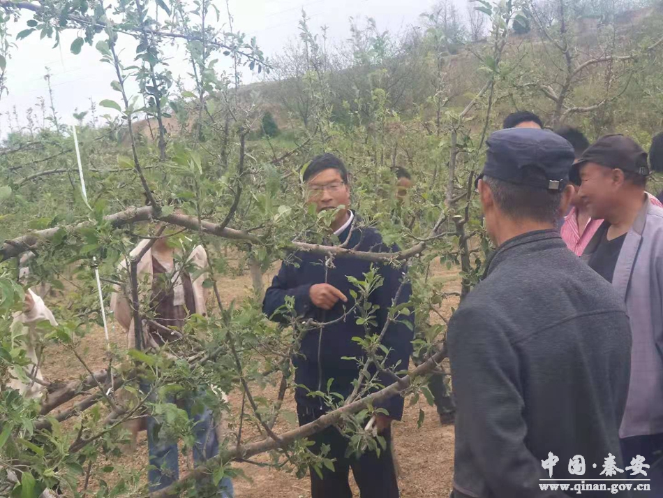 近日,云山镇政府邀请天水市乡土人才高级农艺师安高祥到云山镇5·2冰雹灾害中受灾严重的云山、吴大、张湾、康崖四村,指导一百多名果农开展灾后果树自救培训,尽力降低群众灾害损失。