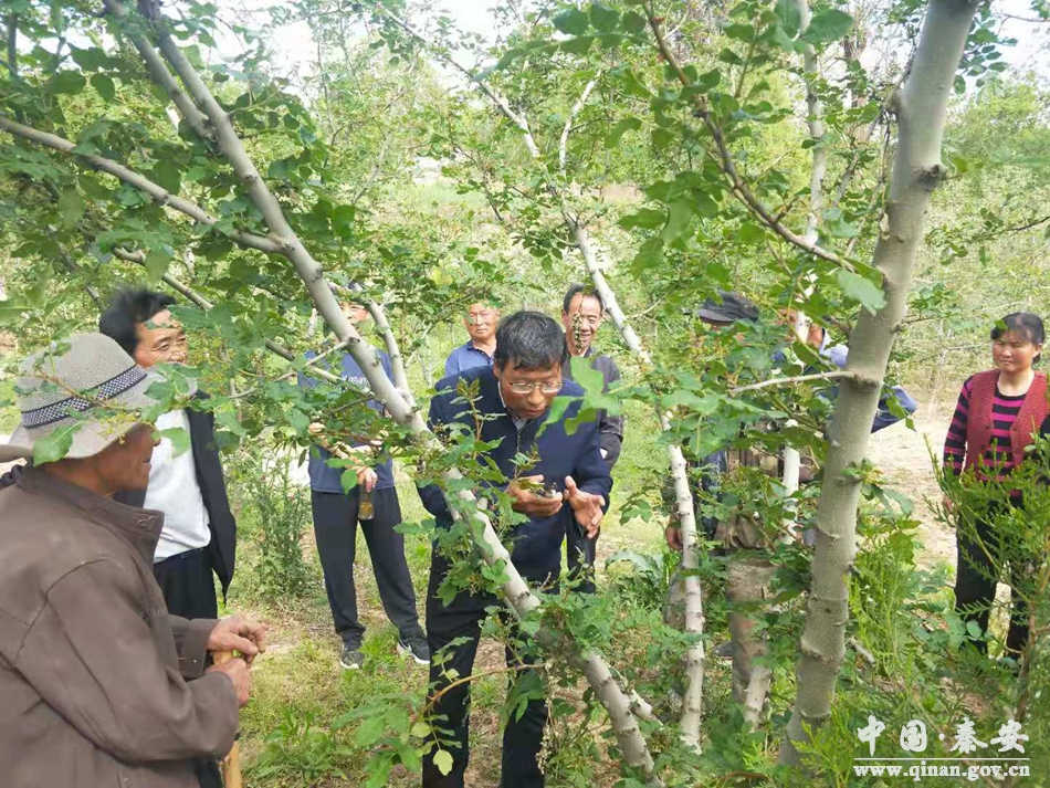 安高祥通过田间实地考察,与群众交谈了解情况后。向受灾的群众讲解到,“果树遭受雹灾,果农朋友首先调整好心态,建立信心,不能放弃。对受灾的果树要尽快采取补救措施,着力修复伤口,尽力将损失降到最低限度”。并在受灾现场指导群众,如何修剪损伤树枝及疏果定果,如何扶正果树及培土保护根系,如何做好病虫害防治等。