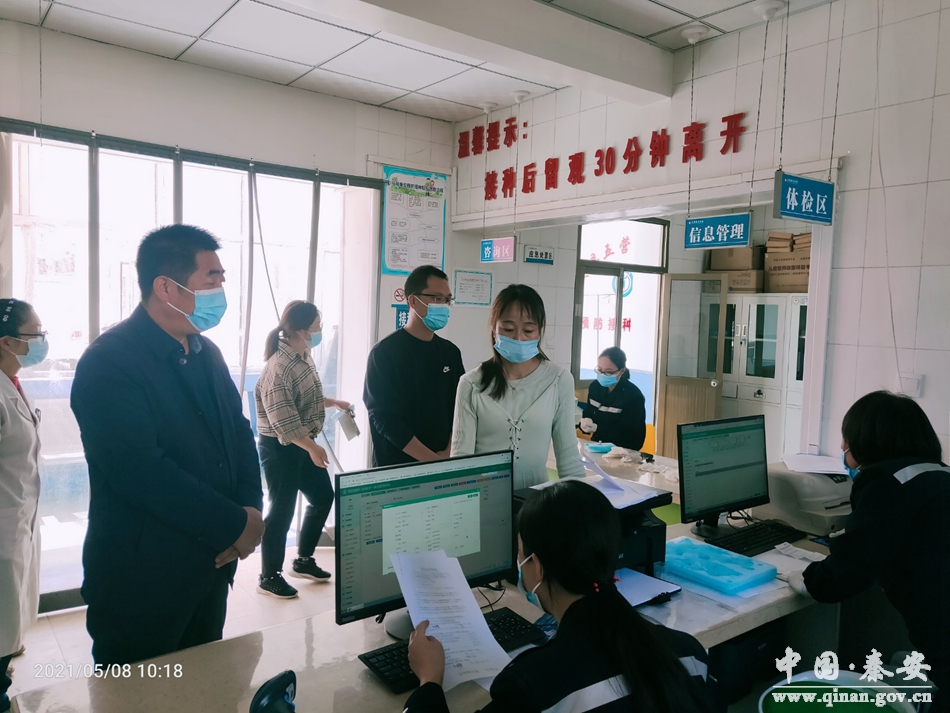 5月8日,五营镇领导对新冠肺炎疫苗接种工作进行督察,确保疫苗接种安全、有序、高效推进,及时完成新到疫苗清零。在督查中,对镇卫生院接种窗口设置、接种登记、留观登记等工作作出安排。由于前期疫苗调配数量少,镇卫生院设置18—59周岁接种窗口一处,因近来到疫苗调配数量增多,接种工作量大,镇卫生院抽增接种医护人员,增加接种窗口,确保接种效率,并对各村组织接种情况作出安排,要求各村按照任务数量组织群众有序接种,坚决做到疫苗隔夜清零。