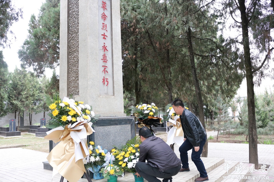 在秦安县解放纪念馆参观结束后,大家来到了秦安县烈士园林凭吊了烈士的墓碑。大家怀着沉痛的心情向烈士纪念碑行鞠躬礼并敬献花篮,向长眠于沃土的先烈们表达沉痛哀悼。