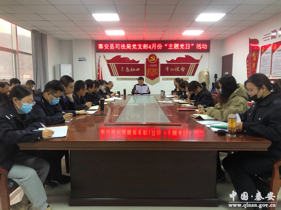 为深入贯彻落实习近平总书记在党史学习教育动员大会上的重要讲话精神,更好地迎接中国共产党成立100周年,进一步丰富党史学习教育的形式和内容,4月2日上午,秦安县司法局党支部组织开展了4月份主题党日活动暨党史学习教育,秦安县司法局党支部全体党员参加。