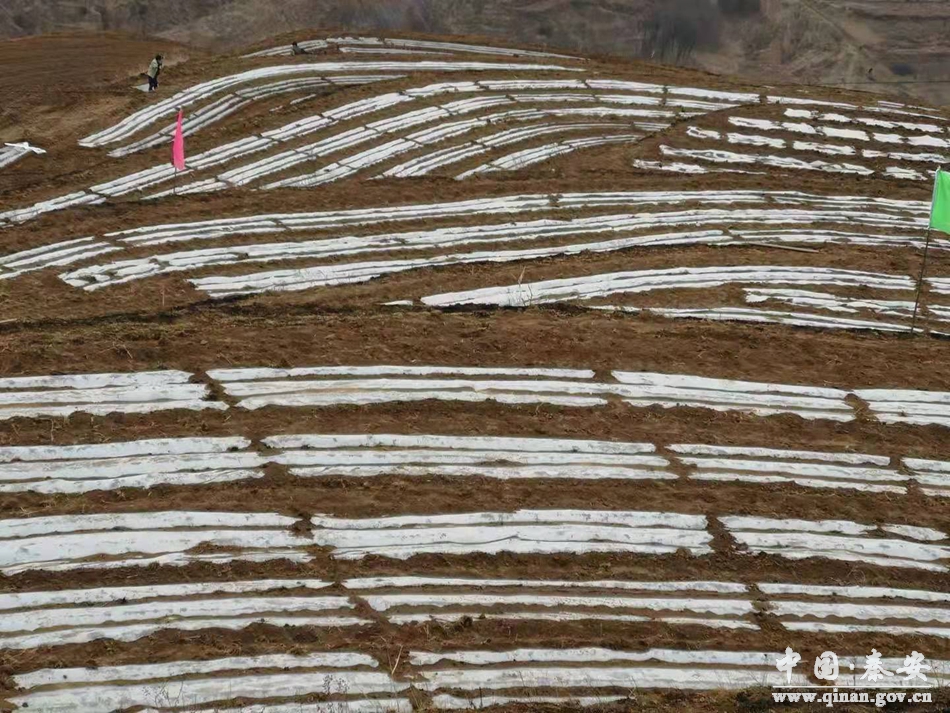 一年之计在于春,一年好景看春耕。时下,正是春耕好时节,魏店镇党委、政府以党建为抓手,充分发挥党委坚强领导和党支部的战斗堡垒作用,发挥党员干部的先锋模范作用,积极组织人员在魏坡村利用撂荒耕地集中建设2000余亩标准农田,一场顶凌覆膜玉米种植的战斗正在打响。在山梁上放眼望去,远处红旗飘飘,人机轰动,两辆大型耕地机正在贯通开挖基本农田,另外一辆大型全自动覆膜机正在后面铺膜。村民三五成群走在希望的田野上,耕作在层层叠叠的田地里,精耕细作,清理杂草,播撒着春天的种子,踏出一曲曲曼妙婀娜的五线谱。后面一道道地膜宛如一条条玉带闪着银光,蜿蜒游走于层层叠叠的梯田之上,临近黄昏,夕阳余辉照射在地膜上,如波光粼粼的水面。地膜在阳光照耀下反射出不同的颜色,在山梁沟峁间划出一条条斑斓的曲线,犹如黄土高原上多姿的“彩虹”。