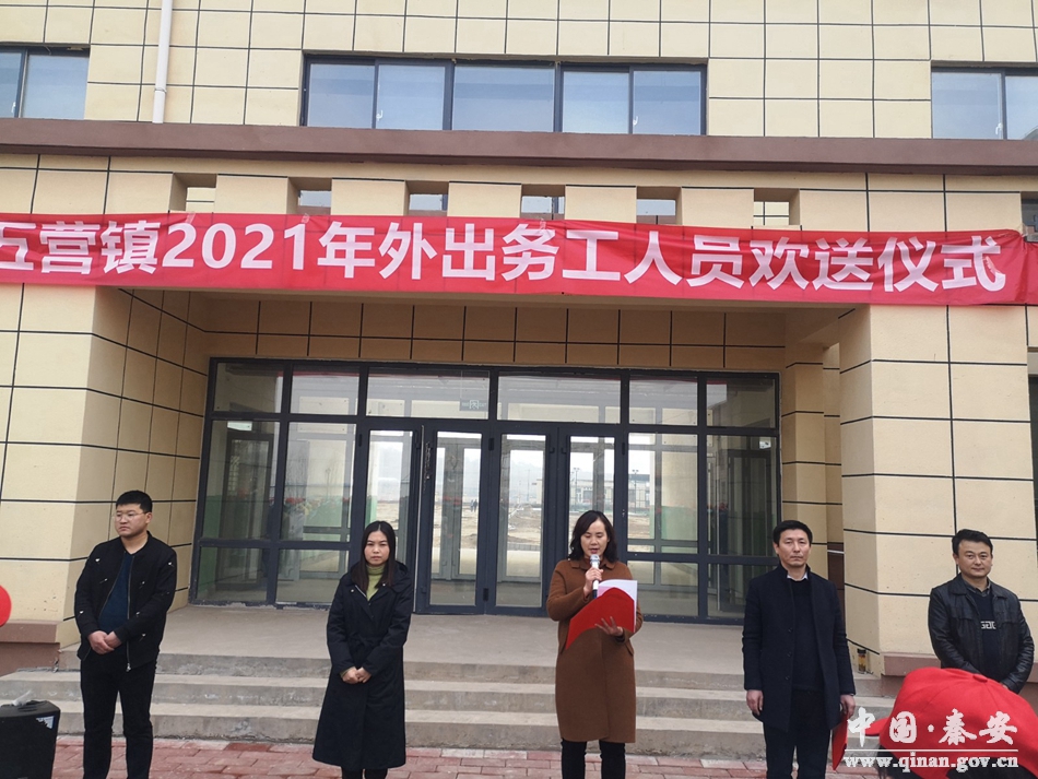 3月3日,五营镇在镇教育园区举行2021年外出务工人员欢送仪式。秦安县政协副主席逯虹参加欢送仪式并讲话,同时向部分外出人员代表发送了纪念品。