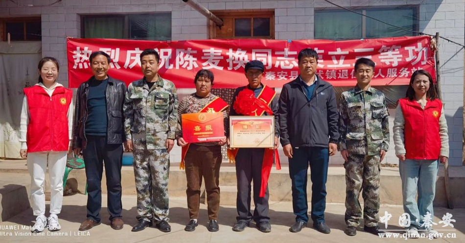 为弘扬拥军优属光荣传统,增强军人荣誉感和家属自豪感,营造尊重关爱功臣模范的社会氛围,3月31日,安伏镇新时代文明实践所、镇人民武装部相关负责人,为荣立三等功荣誉的优秀士兵陈麦换家属送上喜报,把党、政府和军队的关怀和温暖送到军属家中。