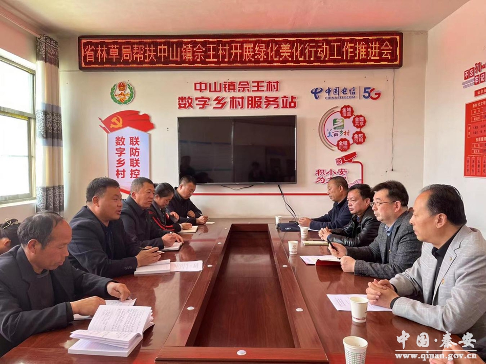 3月28日,省林草局防沙治沙和荒漠化防治处、省林业有害生物防治检疫站、甘肃莲花山国家级自然保护区管护中心等帮扶处室、单位主要领导来秦安县中山镇佘王村实地调研村内绿化美化工作。