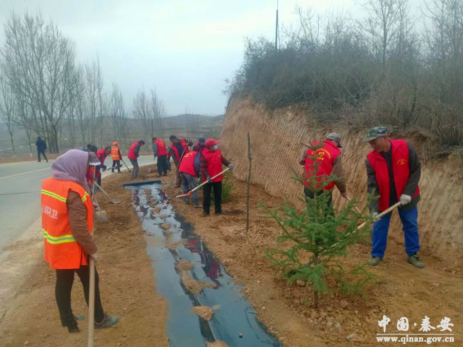连日来,各村志愿者在村党支部书记的带领下,身着红马甲,带上铁锹、地膜、水桶,三至四人一组,干劲十足,挖土、扶苗、铺膜、浇水等,现场热火朝天,各环节井然有序,营造了植绿、爱绿、护绿的良好氛围。