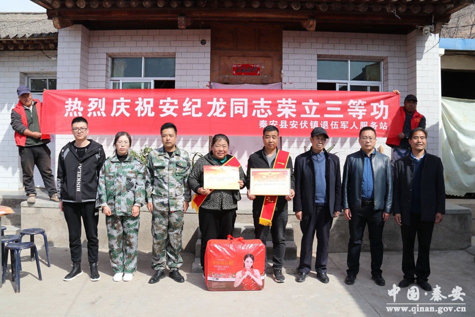 3月28日,伴随着欢庆的锣鼓声,安伏镇政府和安伏镇“人民”武装部相关负责人为2022年荣立三等功的现役军人安纪龙家属送去三等功喜报和慰问品,表达对立功受奖军人及其家属的深切关怀和问候。