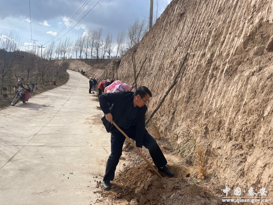 春日晴方好,种植正当时。走进中山镇肖渠村,只见党员干部和群众二人一组、三人成团,他们挥锹铲土,搬苗放苗,挖坑浇水,现场一派热火朝天的劳动场面。一行行、一排排新栽植的苗木昂然挺立,在和煦的春光中焕发出勃勃生机。