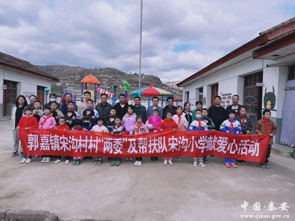 4月16日,郭嘉镇宋沟村村“两委”及帮扶队开展“乡村振兴,教育先行,为爱启航”爱心捐赠活动。为宋沟小学21名学生捐赠了书包、彩笔,文具盒等学习用品,为5名教师捐赠了脸盆、A4纸等生活和教学用品。