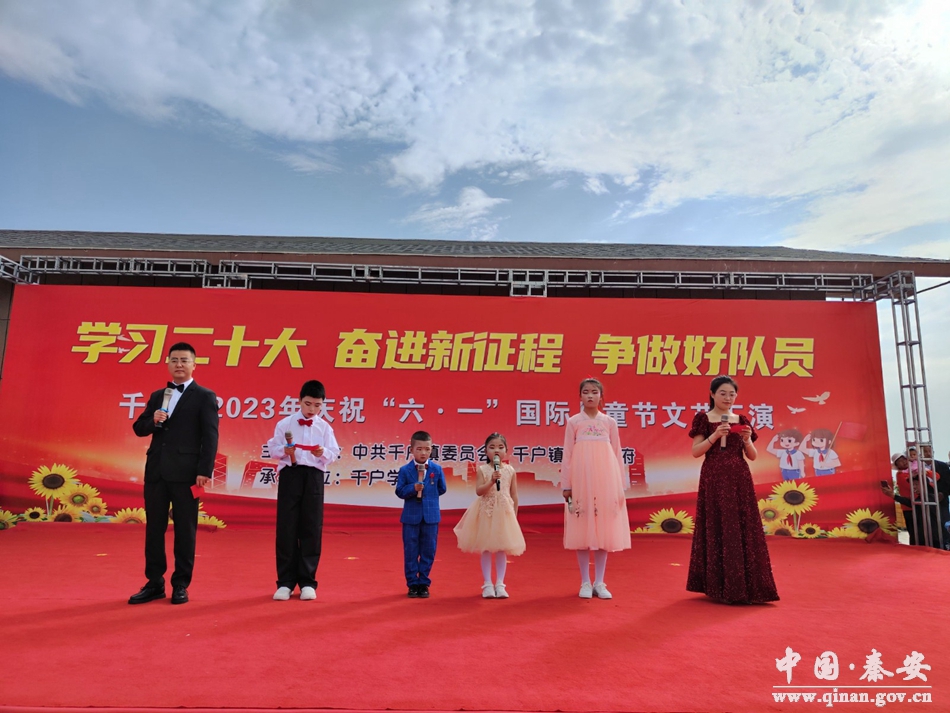 为深入学习贯彻习近平新时代中国特色社会主义思想和党的二十大精神,全面落实“三抓三促”行动,丰富全镇少年儿童的精神文化生活,激发少年儿童热爱生活、热爱学习、热爱家镇、热爱祖国的情感,让孩子们度过一个快乐、祥和的“六一”国际儿童节。在第73个“六一”国际儿童节来临之际,5月30日,千户镇“学习二十大 奋进新征程 争做好队员”庆“六·一”国际儿童节文艺汇演活动在杏树湾农业特色旅游园区举行。