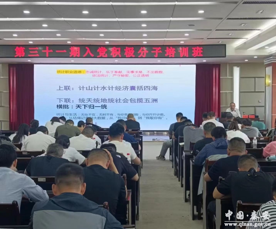 为提升党员干部统计法治意识,强化对统计工作的理解与支持,近日,秦安县统计局党组书记杨昌增应邀为秦安县第三十一期入党积极分子100余名学员进行统计知识及统计法律法规授课。