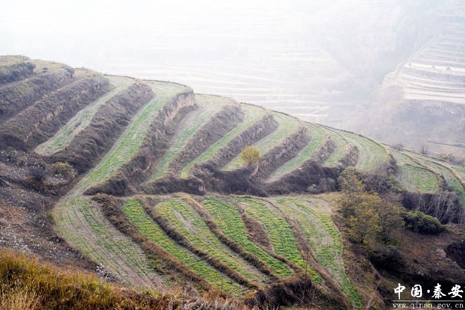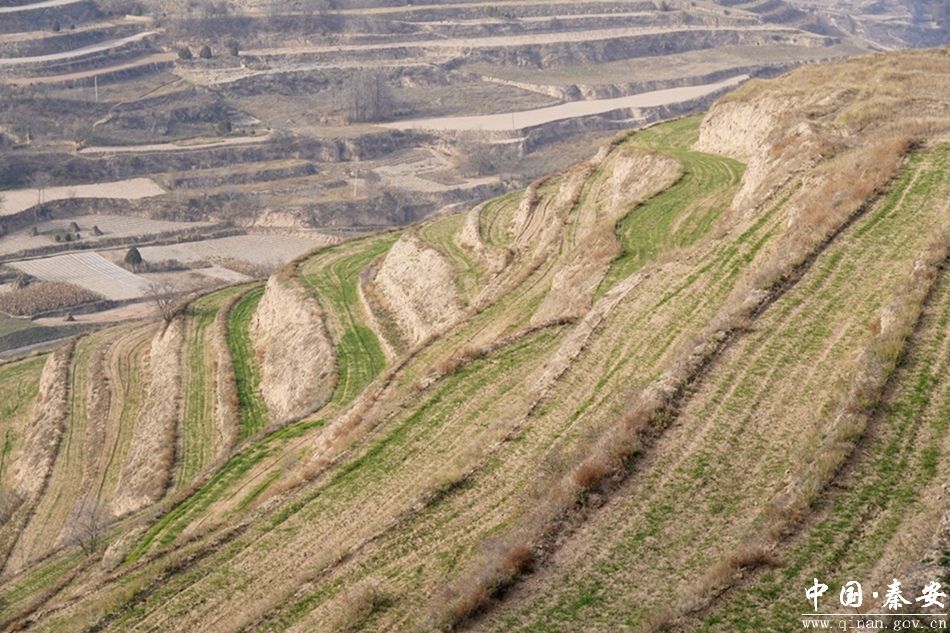 新苗出土满眼绿,千亩良田绘“丰”景。眼下,秦安县王铺镇郭家岔流域的冬小麦陆续出苗,发芽吐绿,长势喜人,青绿色的麦苗在层层田野中郁郁葱葱,处处孕育着“希望”的色彩。