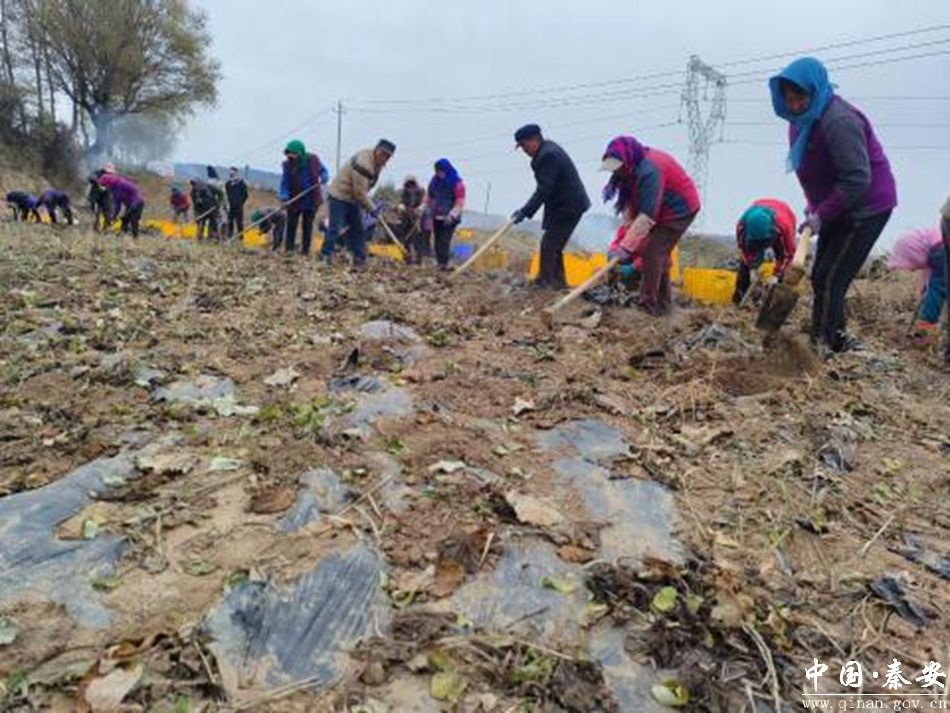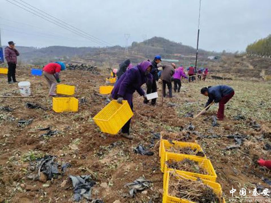 初冬季节,正是中药材冬花收获时节,走进秦安县中山镇蔚文村冬花示范种植基地,映入眼帘的是一派丰收繁忙景象,基地各地块人头攒动,车辆来回穿梭,中药材种植大户和周边群众忙着采挖采拾、装车转运,采收现场有条不紊,在完成田间地头初步处理环节后,一车车冬花被送到加工车间,再进行筛土、分拣、烘干包装。