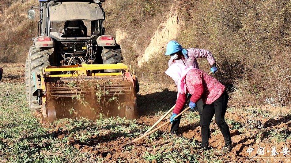 日前,秦安县兴丰镇村党支部领办合作社种植的中药材喜获丰收。走进兴丰镇范山村中药材收采地里,一台大型机械正穿梭在田间地头采挖成熟的板蓝根。伴随着机械的轰鸣声,一根根粗壮的板蓝根被高效快速地抽出土层,务工人员们跟在后面进行拾捡、分级等工作,现场药香弥漫,一派忙碌的丰收景象。