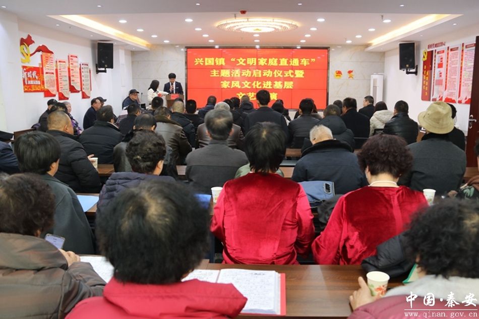 为充分发挥文明家庭在推动基层城乡精神文明建设上的示范引领和辐射带动作用,12月7日,兴国镇“文明家庭直通车”主题活动启动仪式暨家风文化进基层文艺展演活动在何川社区举办。兴国镇党委、政府、人大负责人,何川、北关、凤山社区及茂林村新时代文明实践站负责人、文明家庭代表及文化艺术活动爱好者、部分辖区群众参加活动。