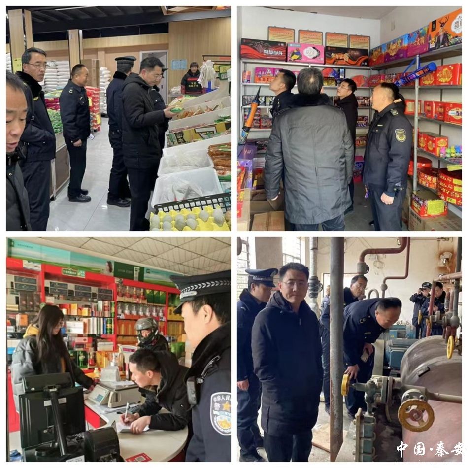 郭嘉镇应急所,派出所,镇执法队,镇市场监管所联合行动,走进镇村街道、年货市场及学校,对发现的隐患问题,提出了整改时限,同时要求各场所负责人进一步提高安全防范意识,切实强化红线意识和底线意识,以对人民群众生命财产安全高度负责的态度,严格落实生产主体责任,从源头上消除隐患,确保辖区内生产安全。