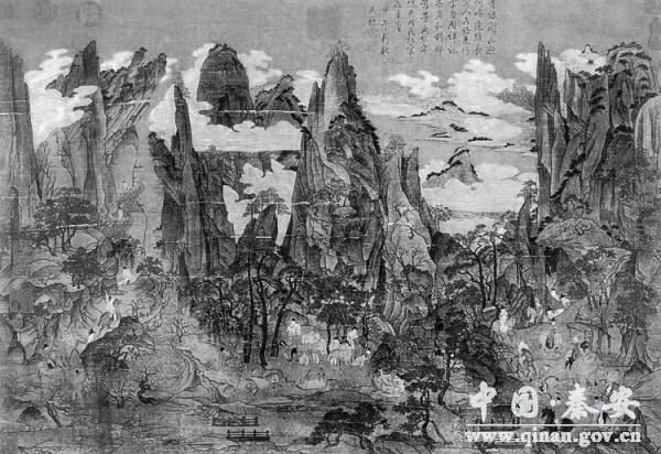 李昭道,成纪(今秦安城北)人,字希俊,唐代画家。他曾为太原府仓曹,直集贤院,官至太子中舍,擅长青绿山水,世称“小李将军”,兼善鸟兽、楼台、人物、并仓海。画风,巧赡精致,虽“豆人寸马”,也画得须眉笔现。由于画面繁复,线条纤细,论者“笔力不及思训”之评。曾作《秦王独猎图》,画作《海岸图》、《摘瓜图》等六件,著录于《宣和谱》。传世作品有《春山游图轴》、《故宫名画三百种》、《明皇幸蜀图卷》,现藏于台北故宫博物院。