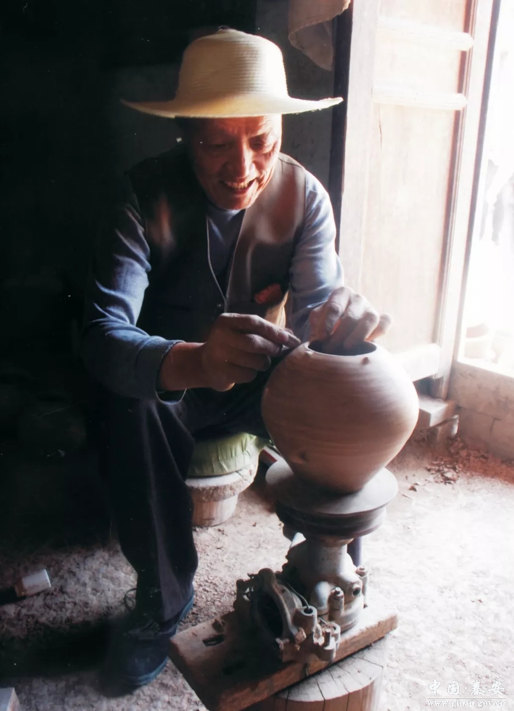 就在当年的大地湾,我看到了一个60多岁的秦安老人,正在用娴熟的制陶手艺仿造着大地湾当年的陶器。陶车旋转,黄色的泥巴在他的手掌中不一会就变成了陶坯,这些陶坯里,有碗,有钵,有瓶,有罐,有盆,它们圆圆的口大张着,好像要向我们讲述大地湾远古的一切。
