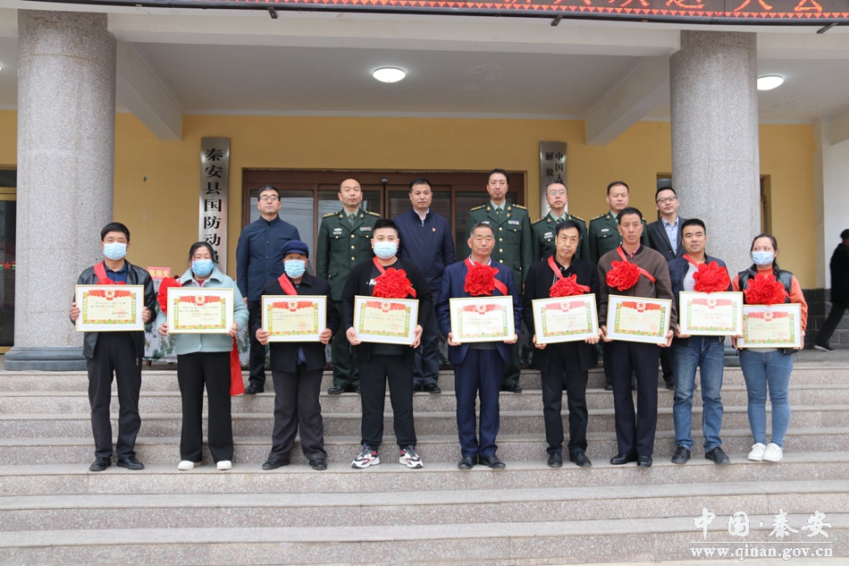 大会在庄严的中华人民共和国国歌声中拉开序幕,会上,新兵代表和新兵家长代表分别作了发言,全体新兵与家长互戴大红花;参会领导为在部队服役的秦安籍立功受奖军人家庭发放喜报,为今年入伍的家庭发放了光荣军属牌。