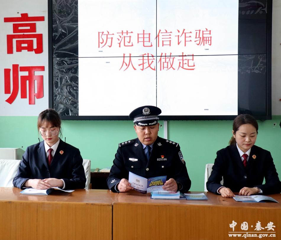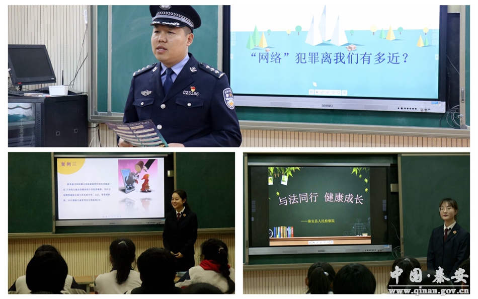 活动中,秦安县人民检察院检察官从“网络犯罪离我们有多近”、“关爱未成年人身心健康”,秦安县公安局五营派出所民警从“校园欺凌、禁毒知识、防范电信诈骗从我做起”等方面进行了法律知识宣讲,并在现场与同学们进行法律知识互动问答,相互交流,在一个多小时的授课过程中,不时发出学生们热烈的掌声。