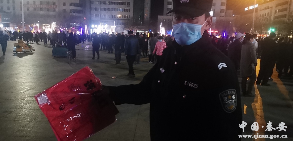 为确保人民群众的生命财产安全,秦安县公安局巡警大队近日在秦安县兴国文化广场、滨河路等人员高度聚集场所及燃放“孔明灯”高发区域进行安全检查巡逻,并对燃放“孔明灯”的群众进行制止。此次安全检查巡逻共收缴孔明灯200余件,有效地杜绝了火患,为群众欢度春节,迎接元宵佳节营造了安全环境。