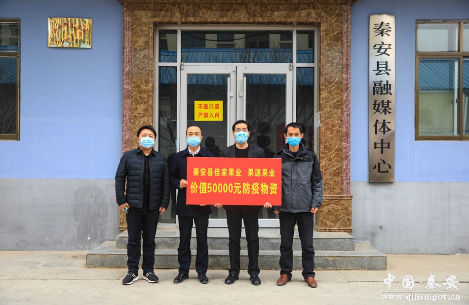 抗击疫情,共克时艰。2月4日,为体恤新闻工作者的辛苦,充分发挥企业的社会责任,秦安县果源果业、佳家果业专业合作社为秦安县融媒体一线新闻工作者捐赠防疫物资共计50000元,助力新闻工作者抗击疫情。