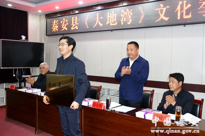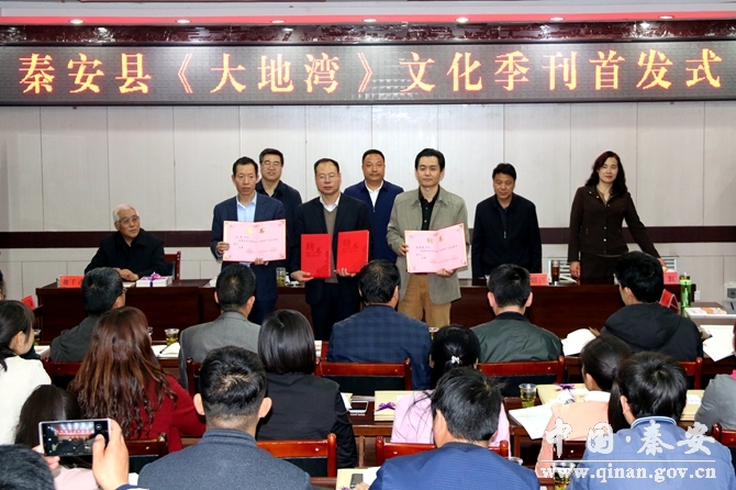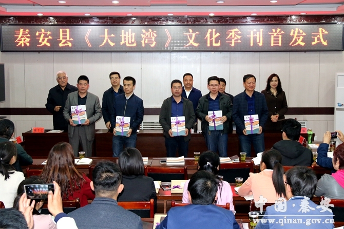 4月17日,秦安县举行《大地湾》文化季刊首发仪式。县委常委、宣传部长徐东明,县人大常委会副主任张耀清,县政府副县长于剑锋,县政协副主席逯虹,原县人大常委会副主任魏千乙,《大地湾》文化季刊特邀顾问雪潇、王贵禄、汪渺及《大地湾》编委成员和相关部门、单位负责人参加首发仪式。