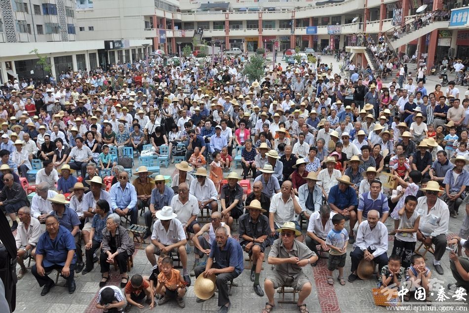 演出进行到一半,秦安县城忽然大雨倾盆,但演出并没有因为大雨而中断,台下的观众们提着小板凳打着雨伞坐在房檐下和搭建的舞台下面,演出就在雨中继续着……