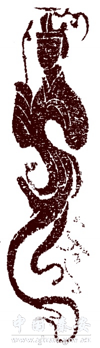 现在看到的汉墓出土的画像石上的伏羲、女娲像,多作交尾状,汉墓出土的砖画中,也有伏羲与女娲人首蛇身的交尾合体图。这是古人长期观察了蛇的交尾形象,换上人的上半身,便成了人格化的蛇神或龙神。在这些画像中,一种是伏羲手捧太阳,女娲手捧月亮,意为伏羲象征太阳神,是阳精;女娲象征月亮神,是阴精。在中国古代的占星术中,女娲是月神,是主管水旱之神,故可据月形占验气象。《论衡》记汉代风俗曰:“久雨不霁,则攻社,祭女娲。”可见女娲正是月亮神。另一种是伏羲、女娲分别手执规矩,意为伏羲执规画圆以象征天,女娲执矩画方以象征地,伏羲、女娲是天地宇宙之主。还有一种比较少见,就是在伏羲与女娲之间夹了一位特殊人物,两只胳膊紧紧地搂抱着伏羲和女娲。《庄子·大宗师》曰:“伏羲氏得之,以袭气母。”是否可理解为伏羲、女娲被紧紧地搂在“气母”的怀抱里。不知以何为据,在民间人们把将紧紧搂抱伏羲、女娲者称“无极老母”。