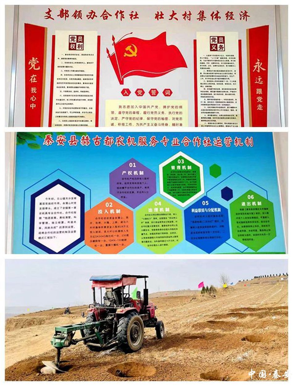 农机服务模式。全镇上下紧盯整治撂荒地和粮油补贴政策,按照“党支部+股份经济合作社+社会化农机服务+村集体经济”模式,由蒲山村党支部牵头,各村股份经济合作社控股,整合蒲山、西庄、张湾、兴隆、上姚、谢马等村集体积累资金,购置大型拖拉机、旋耕机、播种机等农业现代化机械成立“赫古都”农机合作社,为全镇20个行政村提供撂荒地统一机械化耕作、覆膜、病虫害防治等社会化服务,村股份经济合作社采取“保底收益+二次分红”模式进行收益分配。同时,合作社通过“代耕代种”方式进行托管,采取不支付土地流转金的方式与农户签订“代耕代种”协议,为农民“代耕代种”小麦、油菜等粮食作物,耕地收益归村集体所有,目前,全镇共完成“代耕代种”土地500余亩。
