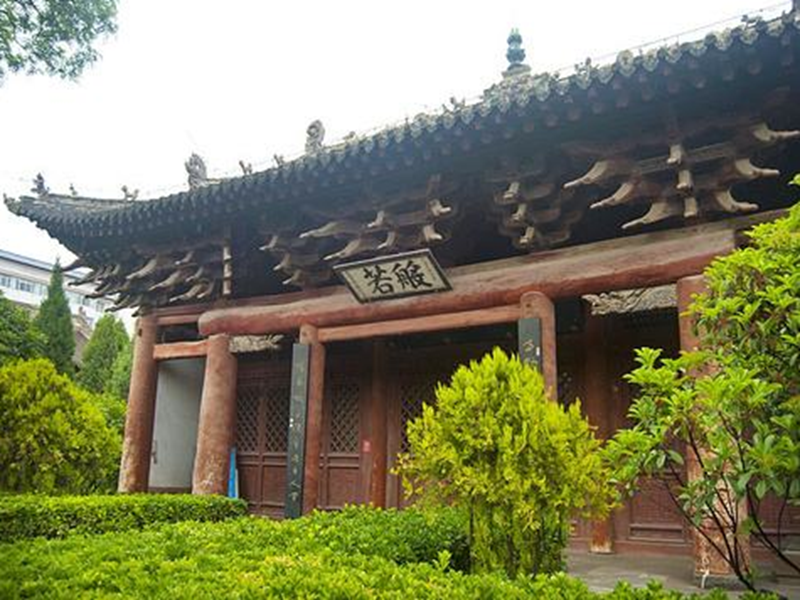 兴国寺座东朝南,中轴线上依次为金刚殿、天王殿、接引佛(韦驮)殿、般若殿,两侧有钟楼、鼓楼、伽蓝殿、菩萨殿。般若殿面阔三间,进深二间,前带廊,前檐显五间,单檐歇山布瓦顶,采用琉璃花脊,瓦顶正脊中施琉璃脊刹,刹下有兽面座,正脊两侧按等距离设置狮、狗、虎等蹲兽,垂脊饰水纹,上有蹲兽二枚,戗脊上亦有蹲兽二枚,端部各设嫔伽一尊,子角梁端用绿琉璃套兽。殿内梁架结构为彻上露明造,采用了元代首创的斜梁构件。般若殿前檐斗拱为六铺作三下昂计心造,每补间施一攒,补间铺作增出45度斜昂,两山和后檐斗拱为五铺作双下昂计心造里转偷心造双跳华拱,为使前檐斗拱与两山和后檐斗拱至令拱上找平,前柱头标高随之下调。大殿用檐柱四根,当心间两根浑圆硕大,柱头卷刹为覆盆状,柱身下用素面圆形柱础,四根角柱最为粗大,以增加建筑四隅的强度。四根角柱明显高于檐柱,有显著为“柱侧角”和“柱生起”作用。般若殿外观雄浑稳定,轮廓协调秀美。大殿栏额上方,悬挂胡缵宗所书的“般若”匾额,字迹古朴雄浑,是一件珍贵的书法艺术作品。