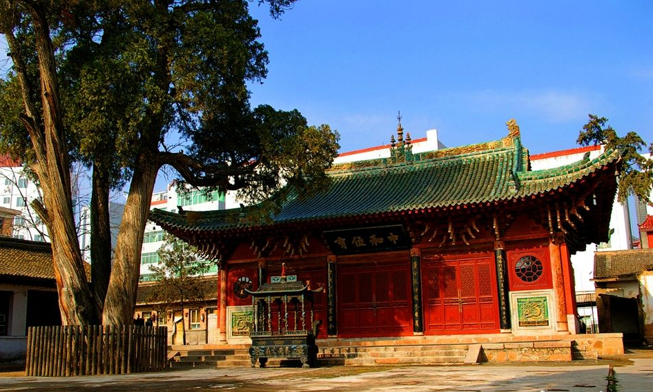 主体建筑大成殿,坐北朝南,面阔五间,通长14米,进深四间,宽10.30米,建筑面积240平方米,大式土木结构七檩抬梁造,单檐歇山顶,上覆琉璃筒瓦,梁枋构件均施彩画,收山、出檐较深,脊饰龙、凤、牡丹、菊等纹饰,两稍间槛墙嵌有琉璃盘龙各一条,其梁架结构,斗拱形制和彩画等均保留有明显的明代建筑特征,是甘肃省保存较完好的明代木构建筑之一。