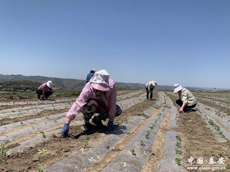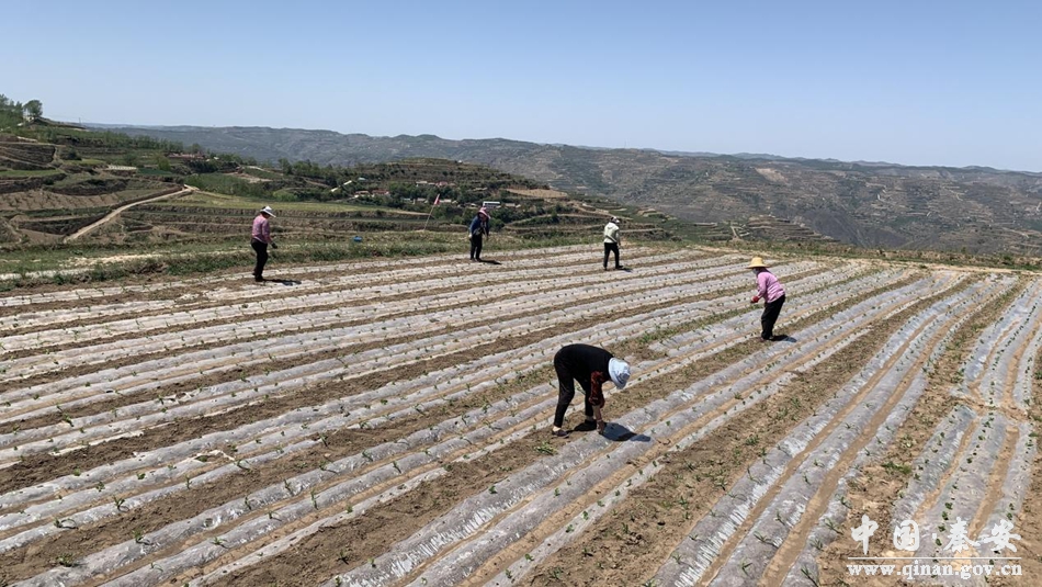 农户们正在烈日下进行育苗除草工作。“现在玉米已经出苗了,预计今年9月份成熟收获,能为村集体创造10万元的收益。”安伏镇镇长告诉记者。