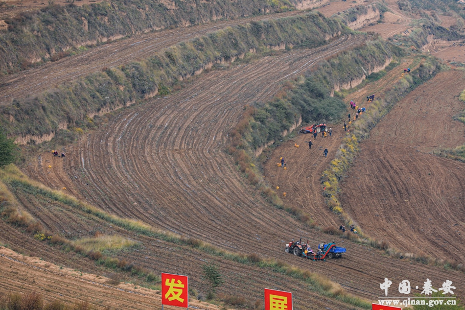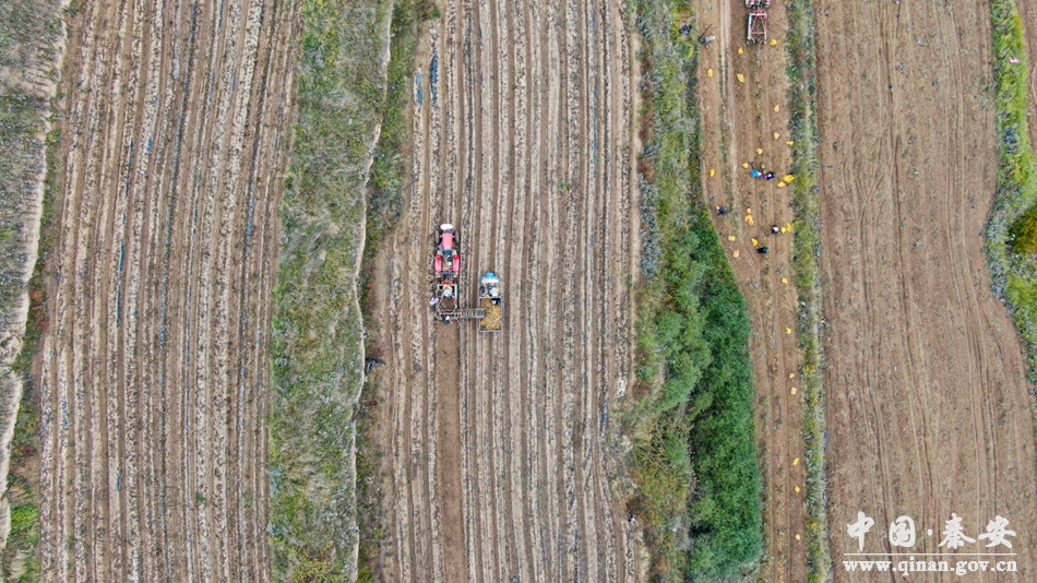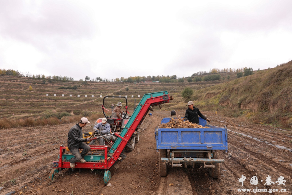 眼下正是马铃薯收获的季节,在王铺镇万亩马铃薯良种培育示范基地,马铃薯喜获丰收,伴着大型机械的轰鸣声,一个个外观饱满、个头匀称的马铃薯从地里翻出来,村民们忙着将马铃薯分拣、装车、运送,处处呈现着繁忙的丰收景象,一颗颗还带着泥土的马铃薯映衬着老百姓丰收的喜悦。