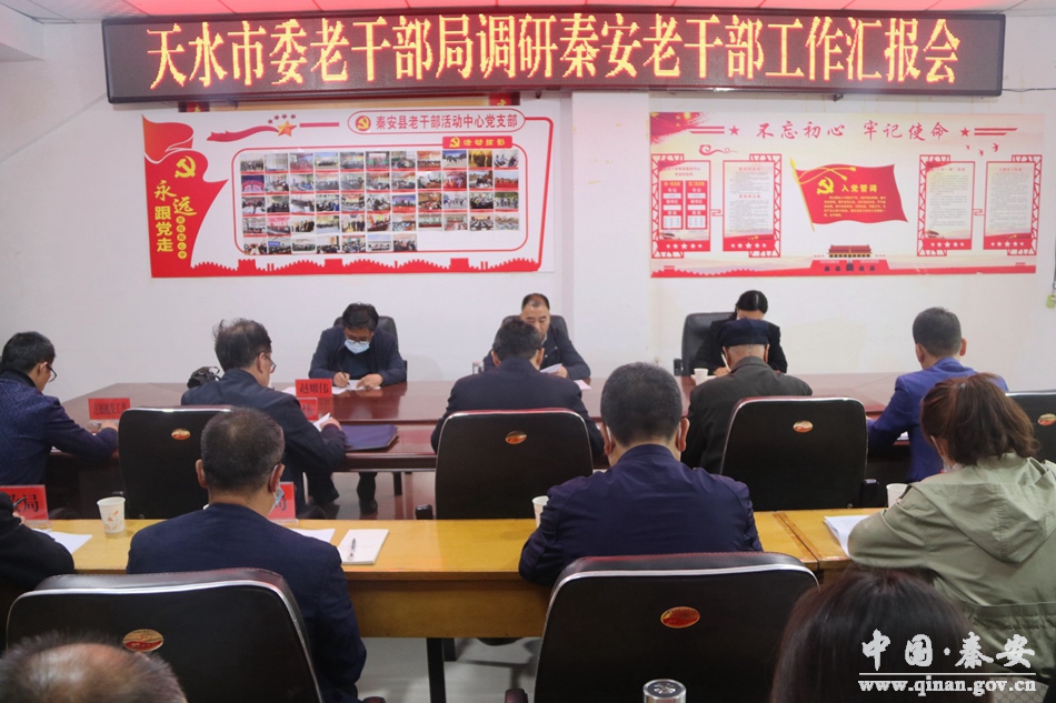 5月13日,天水市委老干部局副局长秦张彦带领调研组来秦安县就老干部及关心下一代和老年大学工作进行了调研,县委常委、组织部部长许祖熙,县人大常委会原主任、县关工委常务副主任贾万祥等一同调研。