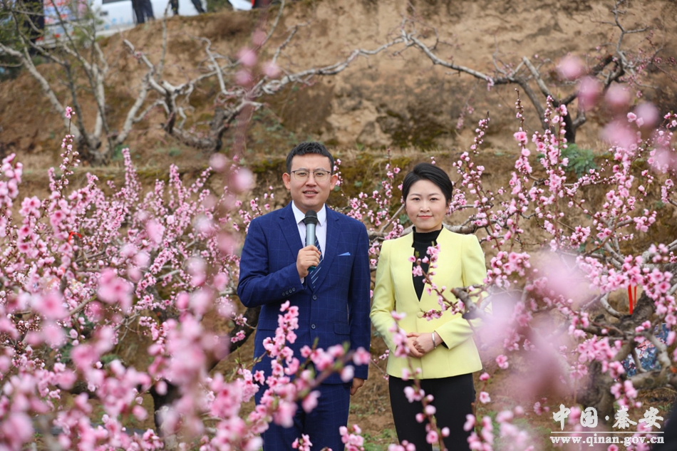 以花为媒、以花会友。4月2日,秦安县组织省、市、县主流媒体、自媒体、网红等走进西川镇李堡主景桃园,通过抖音、快手等新媒体平台开展直播和非遗体验展销活动,为秦安县2021年桃花会的顺利举办预热。秦安县委副书记王龙强参加了活动。