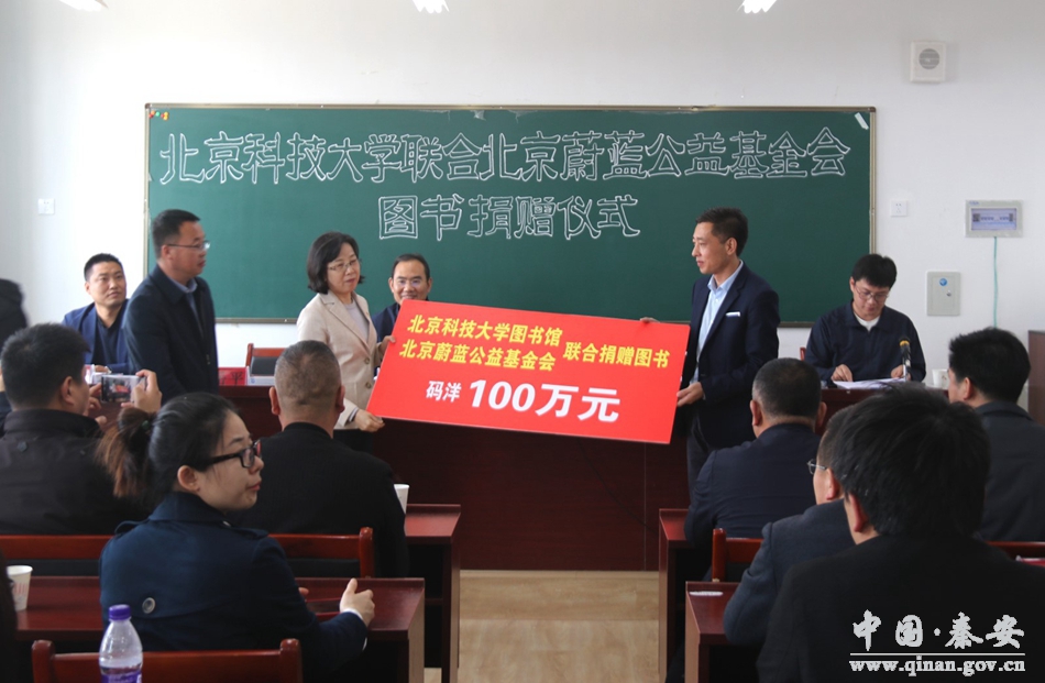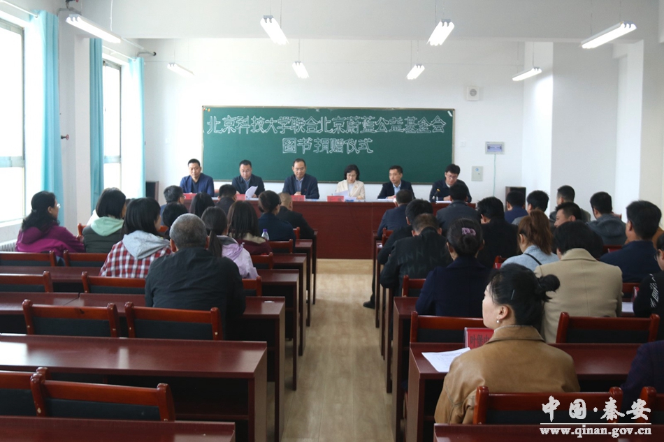 4月16日,北京科技大学联合北京蔚蓝公益基金会图书捐赠仪式在秦安县刘坪中学举行,北京人天书店集团北京区经理、北京蔚蓝公益基金会巡视员戚剑,北京人天书店集团甘肃区经理、北京蔚蓝公益基金会巡视员李现林,北京科技大学图书馆馆长王瑜,秦安县领导陈雪松参加捐赠仪式。