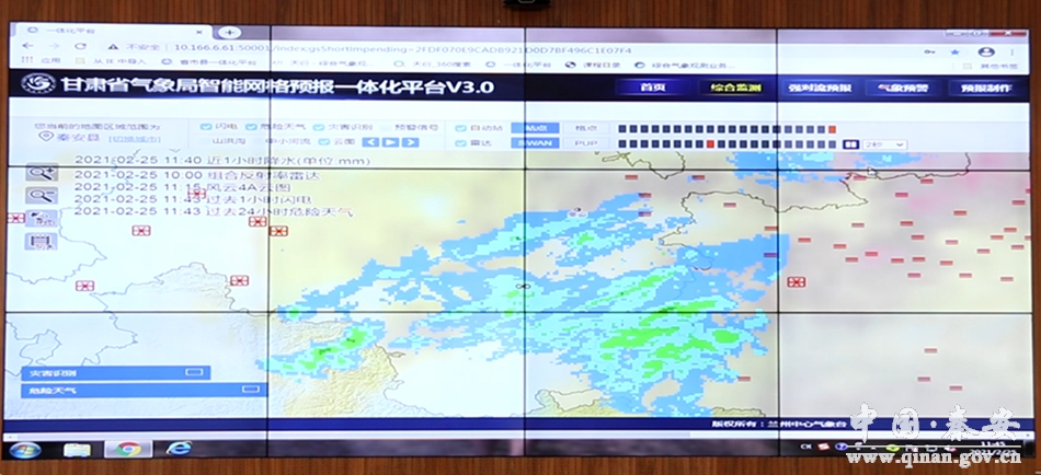 秦安县气象局局长杨睿告诉记者:“我县进入一月份以来,降水明显偏少,一月份比往年偏少四成,二月份偏少八成,川区、浅山区阳山出现干旱。2月24-25日我县普降小雨雪,城区降水量1.1毫米。据最新预测,27-28日我县有雨夹雪天气。我局将抓住有利的天气形势,及时开展人工增雨雪作业”。