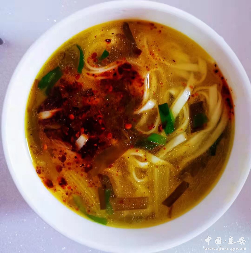 浆水面是秦安传统特色小吃,相传该名是由汉高祖刘邦与丞相萧何在汉中所起,其味酸、香,别具一格,土生土长的秦安人,无论走到哪里,对浆水面都有延绵不断的痴情。