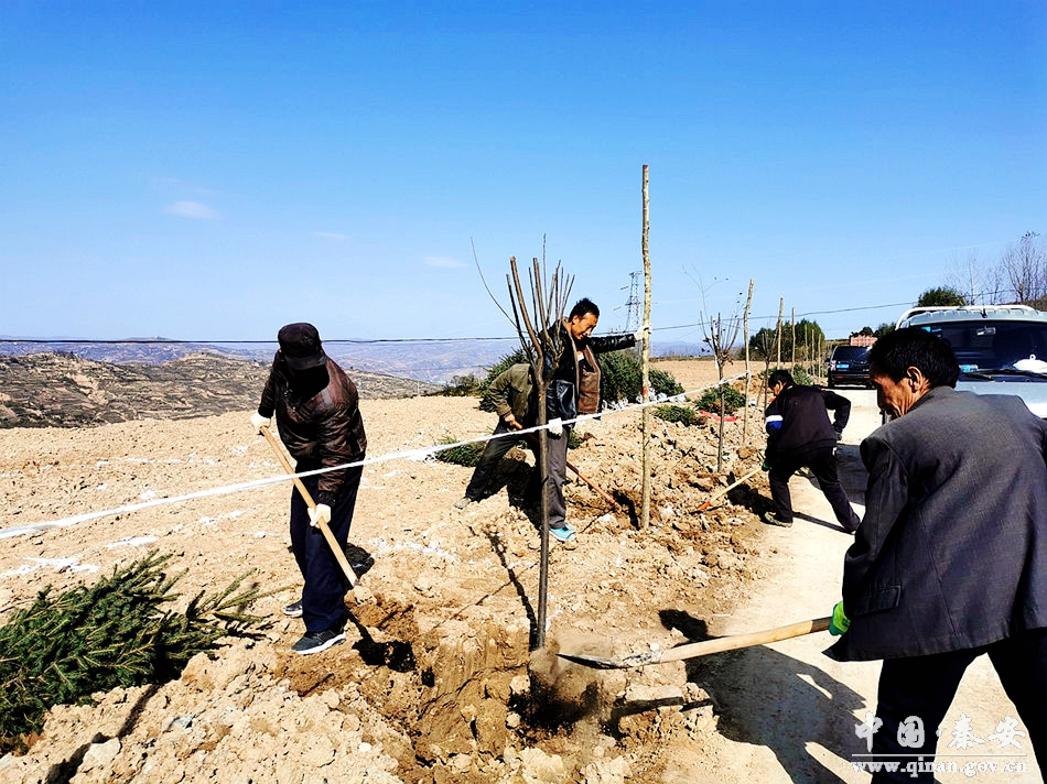 按照秦安县委、县政府统一安排部署,千户镇党委、政府牢固树立“绿水青山就是金山银山”的理念,以“栽一棵活一棵,种一片绿一片”为标准,按照“扩面、延伸、保活”工作思路,广泛发动干部群众带头参加植树活动,形成了全民参与生态建设的社会氛围。