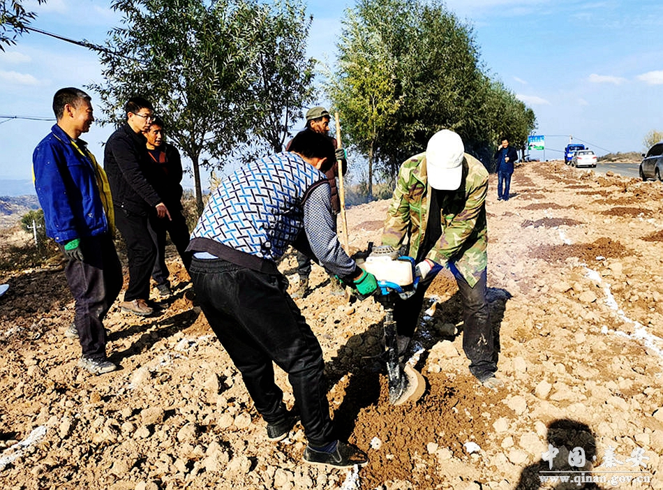 11月1日,在千户镇杏树湾栽植现场,人头攒动,镐锹挥舞,在各村负责人的带领下,干部群众有的拉线、有的挖坑、有的栽树、有的培土、有的浇水,分工明确、各司其职、齐心协力、干劲十足,严格按照标准要求,做到苗正土实,确保栽植一棵,成活一棵,为建设环境优美、生态和谐、家园宜居美丽千户再添一抹新绿。