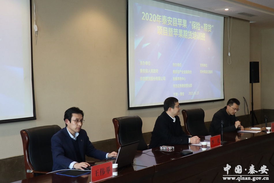 1月15日,秦安县苹果“保险+期货”项目暨苹果期货培训班开班仪式在大地湾印象酒店举行,秦安县政府党组成员李虎参加了开班仪式。