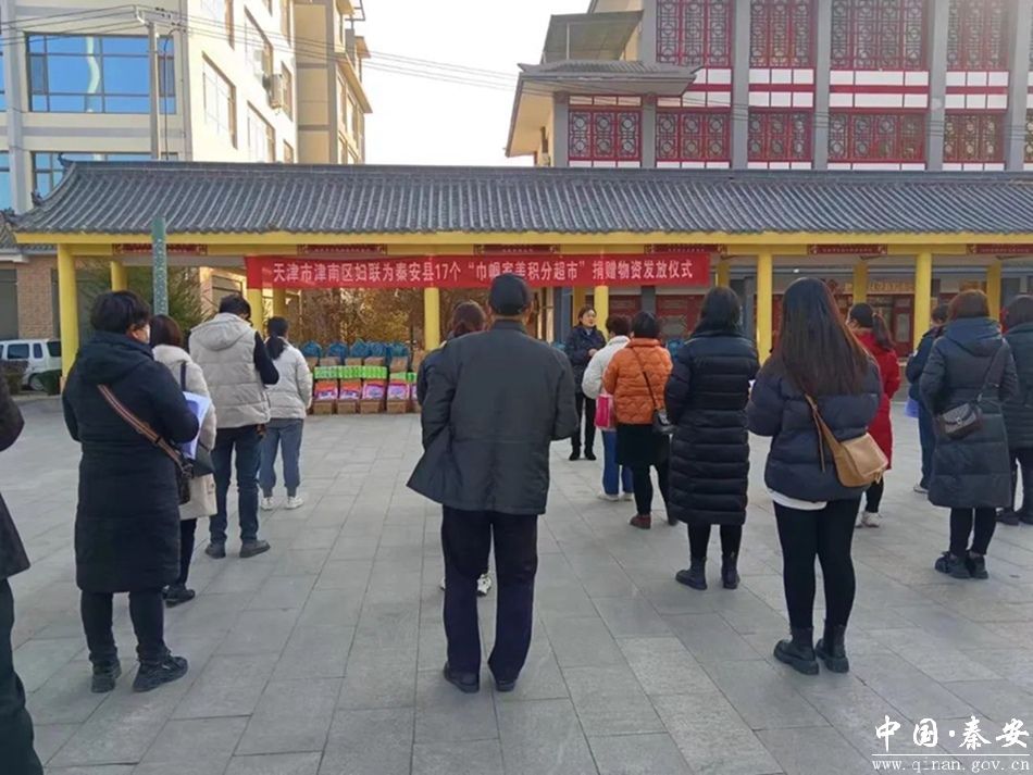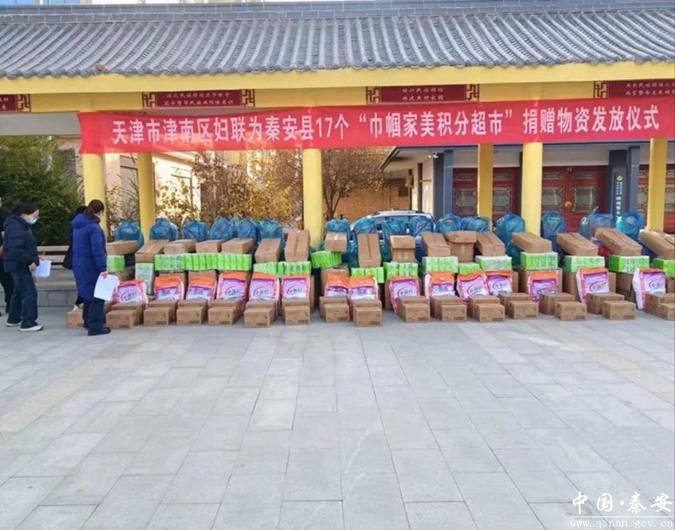 近日,天津市津南区妇联为秦安县17个“巾帼家美积分超市”捐赠物资发放仪式在兴国镇安家园子广场举行。秦安县妇联领导干部、17镇妇联主席和17个“积分超市”相关村的妇联主席参加仪式。