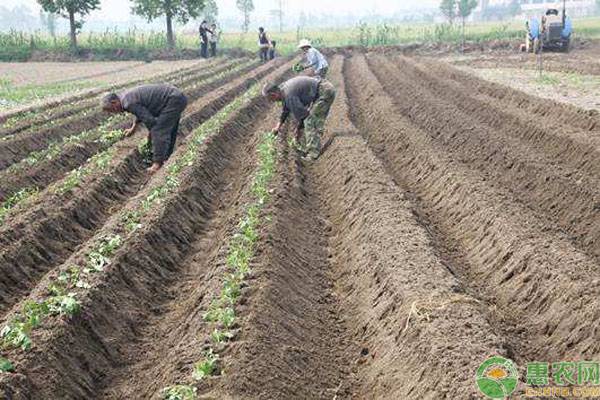 起陇宽45CM-50CM,双行三角种植。每亩栽种在3500棵左右。合理密植块型垂直生长块型成细长型。栽种后及时浇透水,确保不缺苗。中期看秧苗情况合理控水,防止秧苗徒长,在9月份红薯地面有裂纹时浇水灌根,最后追施一次钾肥。以粪水灌根最好,俗称裂缝肥,对红薯的后期膨大至关重要。