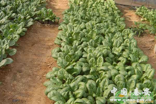 4、管理要点菠菜生长过程中,最需要注意的就是追肥和浇水问题,这里就主要讲一下这两个方面。首先是施肥,菠菜生长前期几乎上不用进行追肥,主要依靠田间的基肥供给菠菜生长。在菠菜生长进入中后期之后,可以根据菠菜的生长情况适当的追施一到两次速效氮肥,可以随水追施硫酸铵每亩15供给左右。施肥过程中注意尽量不要将肥料撒在叶心中,避免引起肥害。