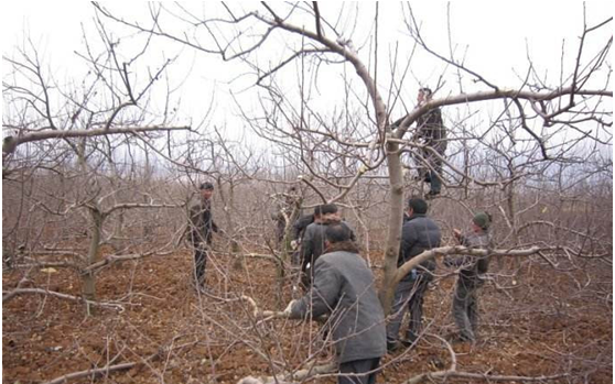 甘肃,陕北地区乔化长枝品种主要以长放为主。对已经盛果期过的树,此法只针对弱树。用主枝背上枝优势自然换头,做到背上小角度单轴延伸,适当培养背上枝结果单元,配合两侧斜生壮条结果。疏除老弱病残枝,果子品质优。
