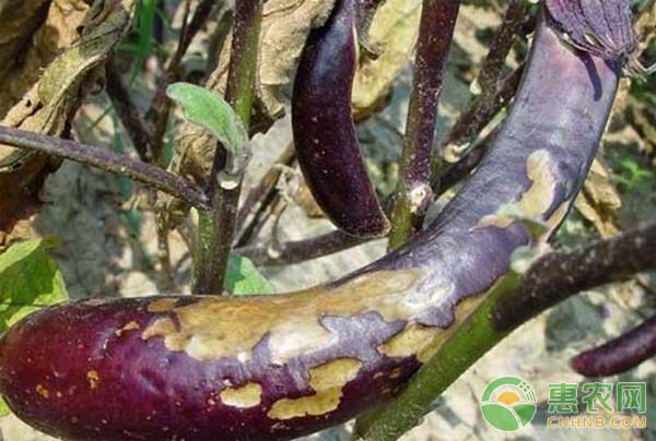 灰霉病:温室成株期茄子低温时段最易发生灰霉病。花、果、叶、茎等部位均可侵染,多从残留的柱头或花瓣侵染。幼果最易受害,一般虫从果实顶部及其附近产生水渍状褐色病斑,扩大后呈暗褐色,凹陷腐烂,并着生灰色霉层。叶片多从叶缘处先形成水渍状浅褐色病斑,扩展后呈圆形或椭圆形病斑,并密布灰色霉层。茎秆和枝条发病,多从伤口、或残花着落处染病,并密布灰色霉层,后逐渐向茎秆内渗透而导致病部以上茎叶萎蔫。